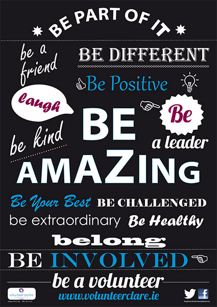 Our Mission: To promote the value of volunteering; increase the range and quality of volunteer roles and supports in Co.Clare and raise awareness of the importance of people being able to connect with their communities.